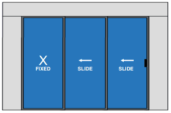 2 Moving Glass Panel + 1 Fixed Glass Panel